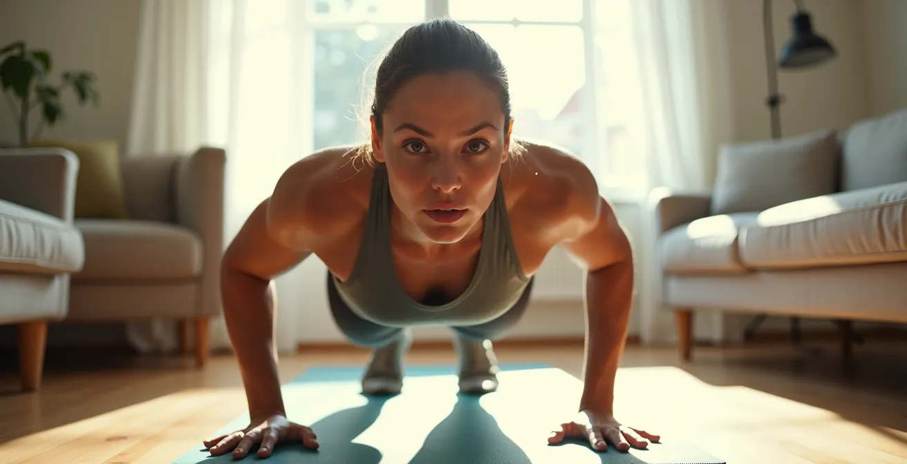 Zusätzlich zur richtigen Ausrüstung können Sie die Übungen selbst modifizieren. Dieser „Low-Impact“-Ansatz reduziert Sprünge auf ein Minimum. Anstatt in die Liegestützposition zu springen, steigen Sie mit den Füßen schnell einzeln zurück. Anstatt am Ende hochzuspringen, kommen Sie explosiv auf die Zehenspitzen. Diese kleinen Änderungen reduzieren den Lärm drastisch, während die Intensität hoch bleibt, wenn Sie die Bewegung schnell und kontrolliert ausführen.